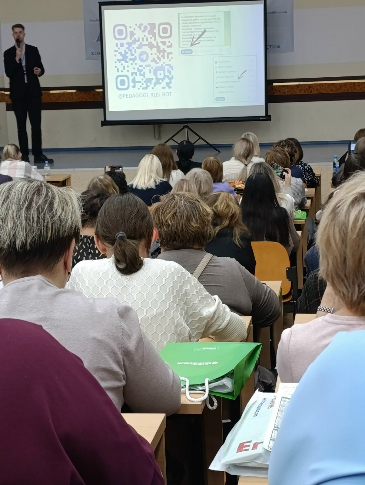 18 ноября в г. Владимире состоялся Всероссийский форум "Педагоги России", в котором наши педагоги приняли участие. В ходе форума у педагогов была прекрасная возможность посетить секции по различным направлениям : такие как цифровая и нейросети, нейрокоррекция и личное развитие и многое другое. В том числе была прекрасная возможность принять участие в практикумах по созданию собственных проектов.