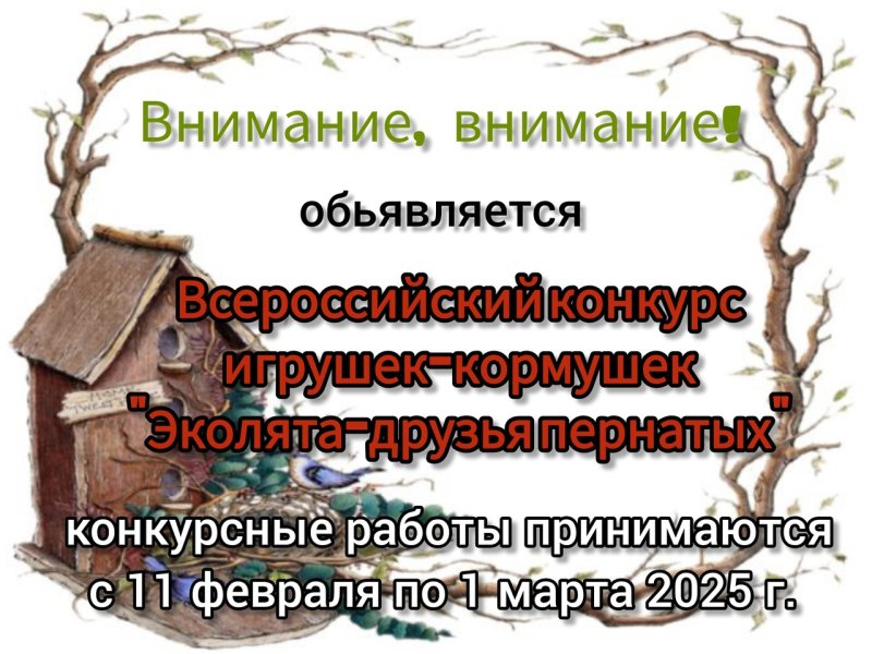 Проводиться всероссийский конкурс "Эколята - друзья пернатых". Конкурсные работы принимаются до 11 февраля 2025 года.